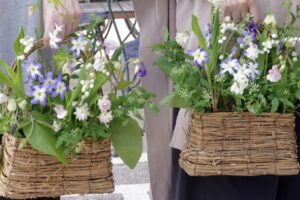 4月のワークショップ すずらんの香る季節、小さな可憐さを籠アレンジ