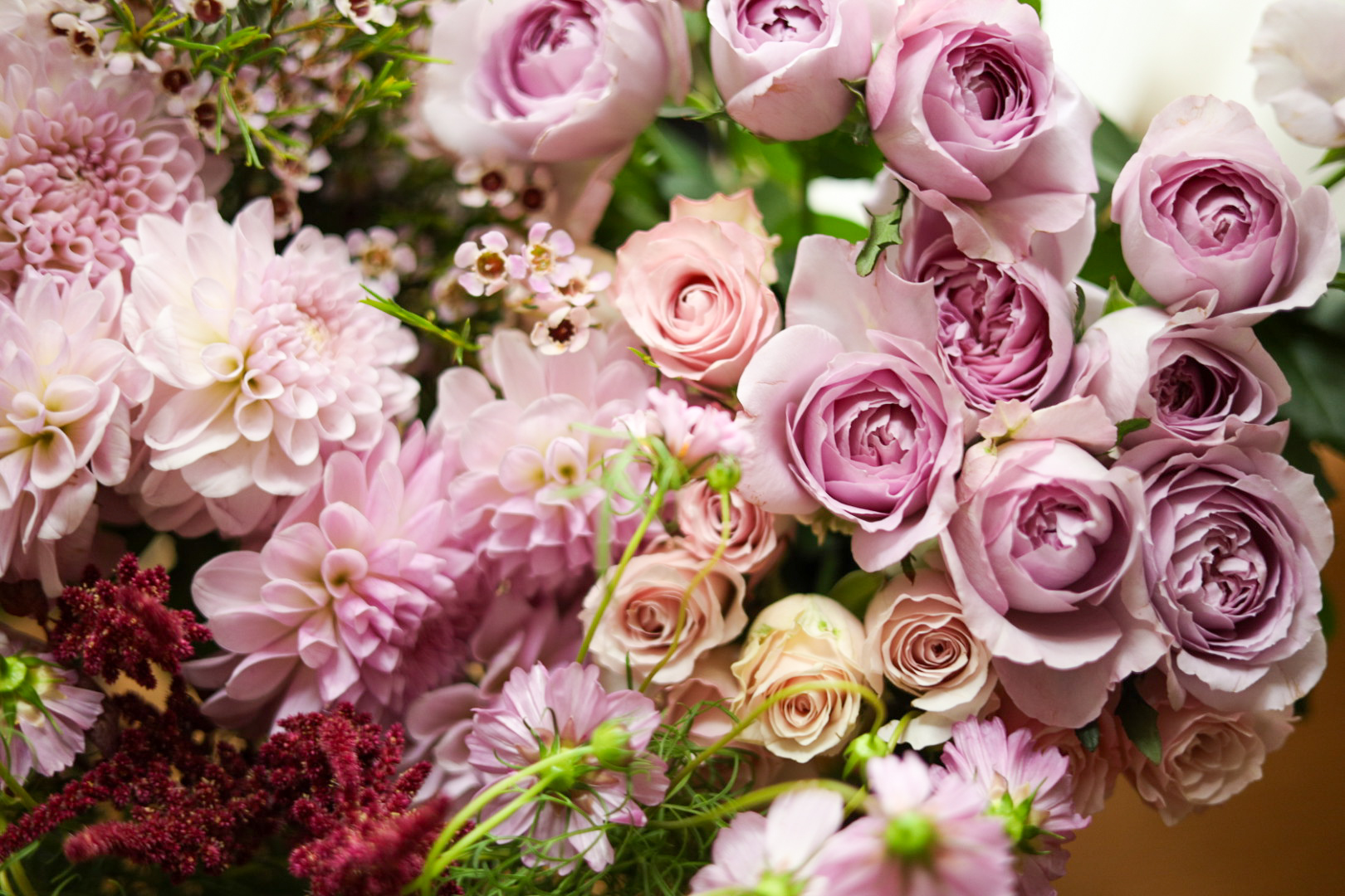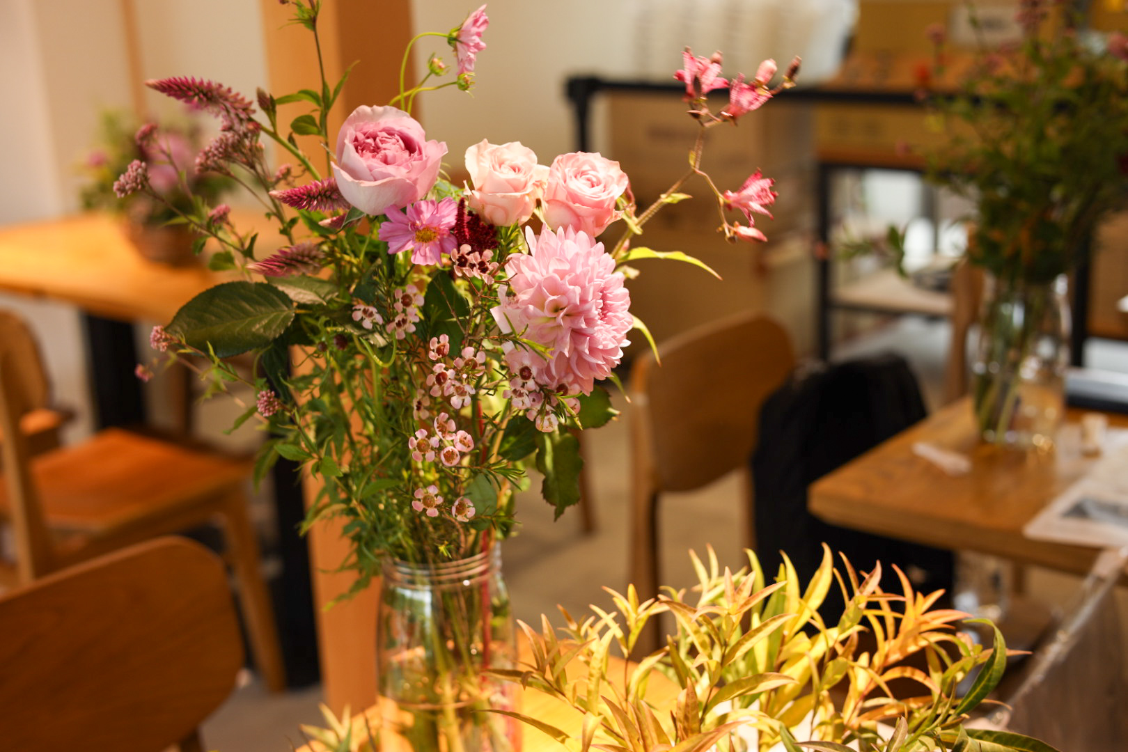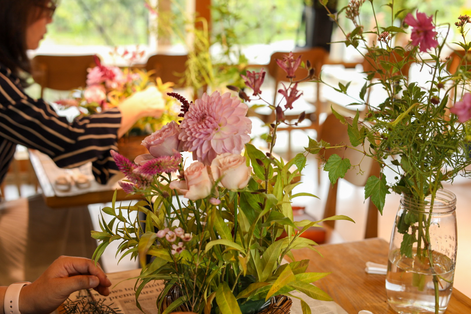 花材について、お花の仕入れが10本単位の為、使われないお花が残ります。可愛いお花をお部屋に飾って欲しいと思い、ワークショップのお花より小分けにしたものを販売しました。これからも時々、販売いたしますので、よろしくお願いします。