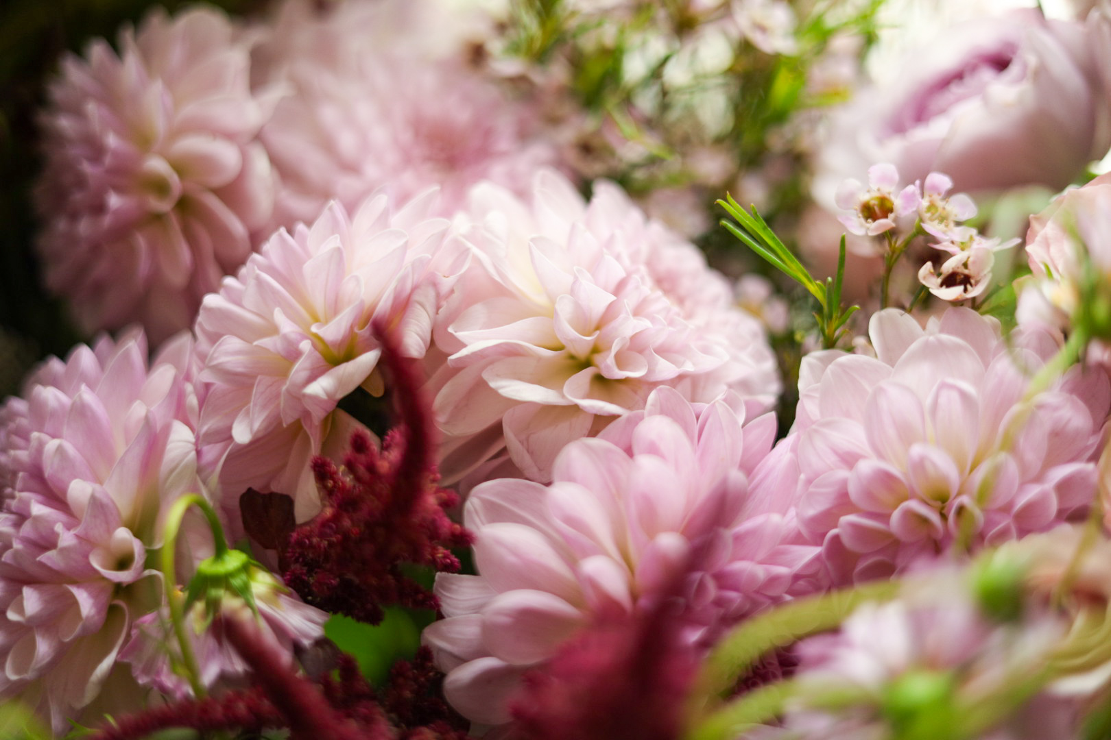 ダリアは、赤とか濃いめの色をよく見かけますが、今では新品種が開発されていて、淡い綺麗な色がたくさんあります。この時期ダリアの種類が一番、充実しています。ダリアの花びらはつまみ細工のようで華やかさや存在感は、ダリアならではの美しさがあります。