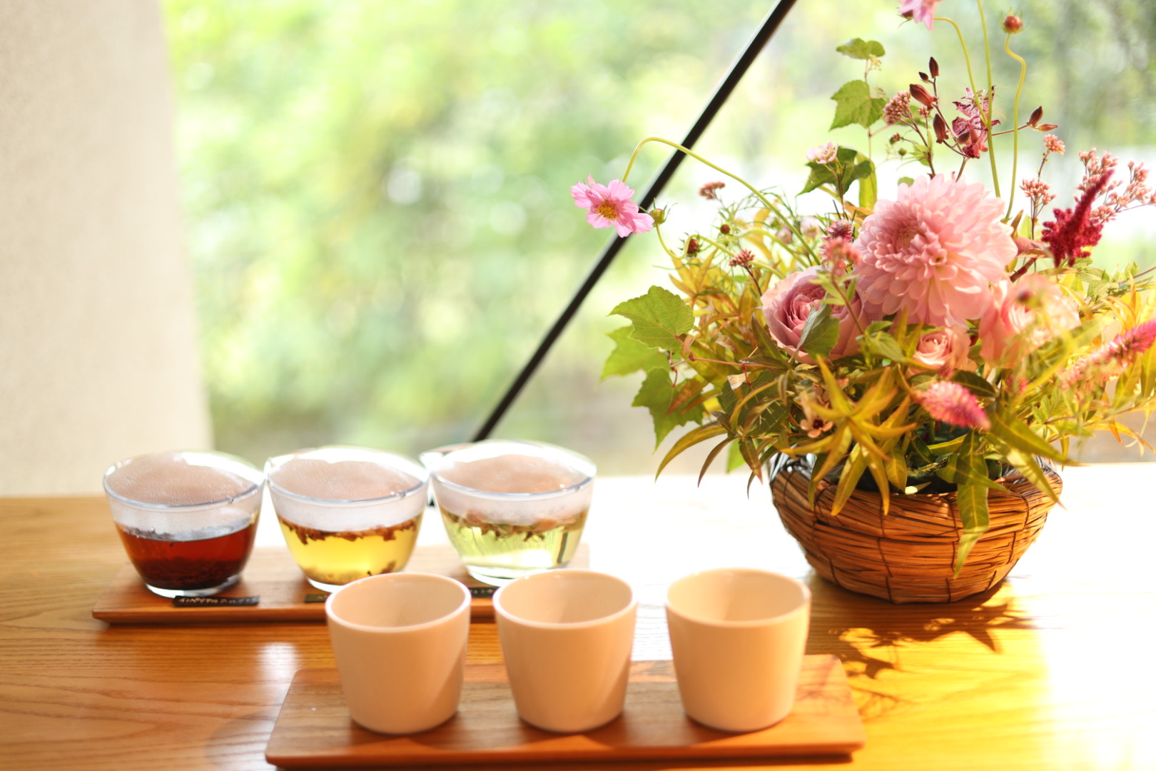 お花のワークショップが終わったら、entreさんでお好みのものをいただきます。ジェラートがあったり、ドリンクメニューが豊富です。私は、今回、ALTHAUSさんのお茶の飲み比べセットをいただきました。